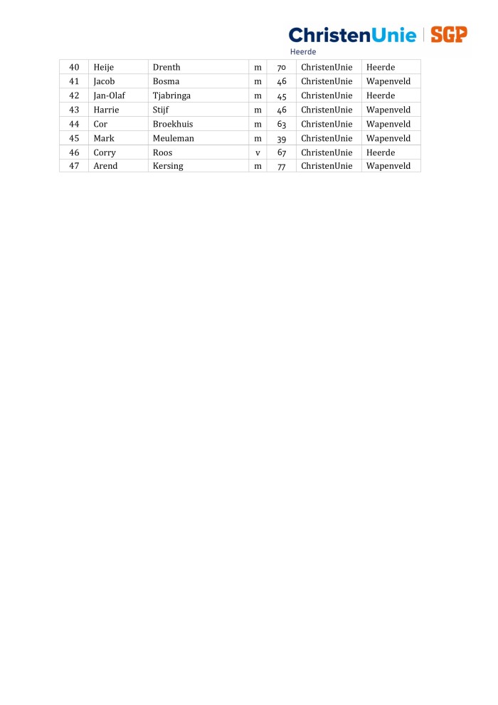 In aanloop naar de gemeenteraadsverkiezingen op 18 maart 2026 kwamen de lokale afdelingen van ChristenUnie en SGP in Heerde bijeen om de kieslijst en het verkiezingsprogramma vast te stellen. Beide besturen zijn verheugd dat er maar liefst 46 kandidaten op de lijst staan.
